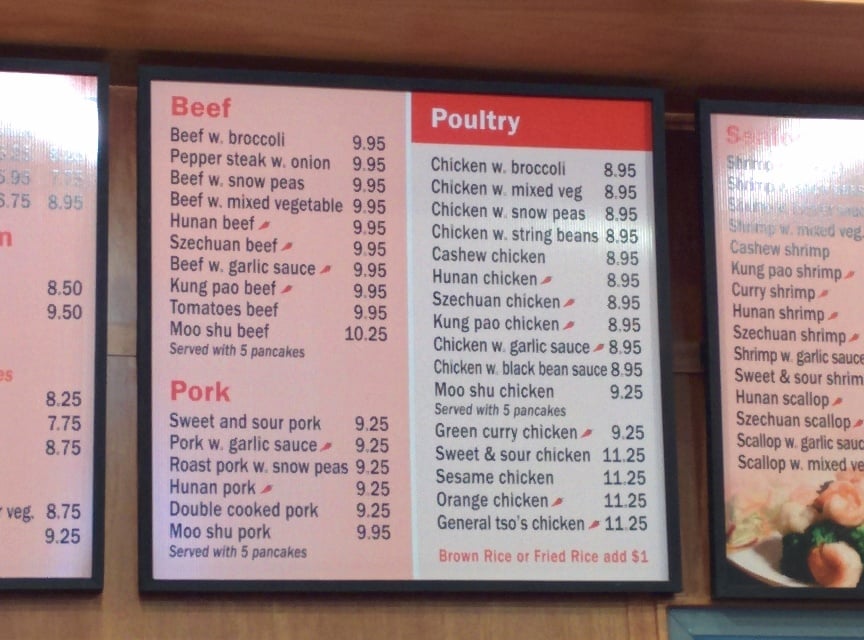Features a generous portion of lightly marinated shrimp, beef and chicken wok-seared with deep fried peanuts and bell pepper in our mildly spicy chili sauce. Contains peanuts. Hot and spicy.